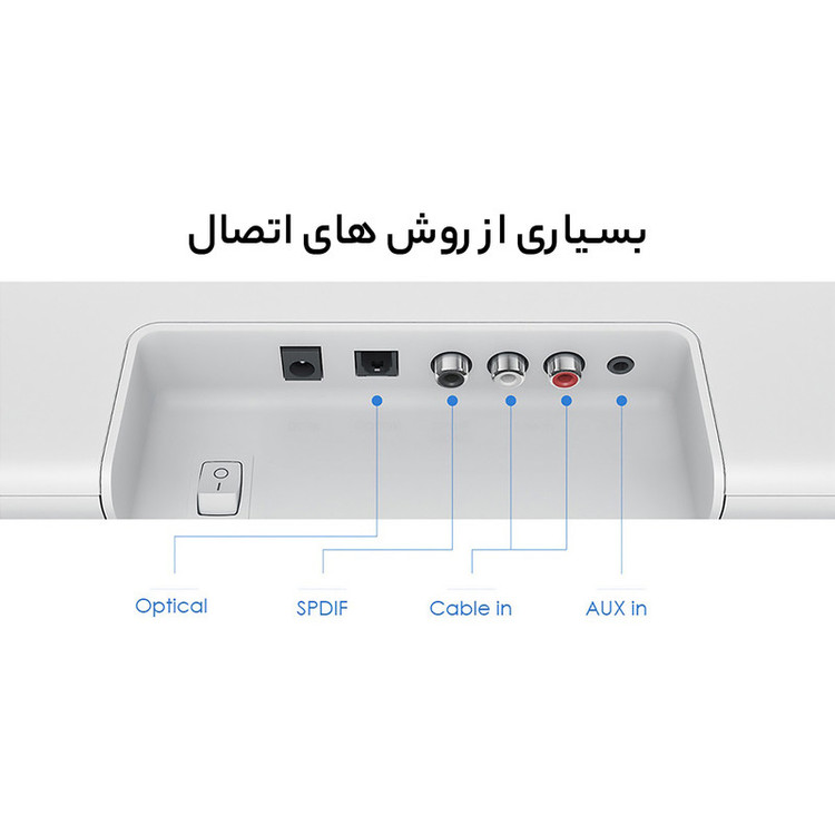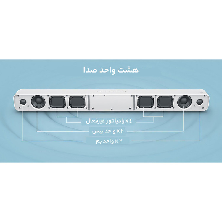 سازگار با تلویزیون پشتیبانی از طریق بلوتوث نوع اتصال بی سیم فاصله اتصال تا 10 متر نسخه بلوتوث 4.2 محدوده فرکانس: 50Hz - 25000Hz دارای 5 حالت ورودی، 8 بلندگو و قابلیت اتصال به دیوار