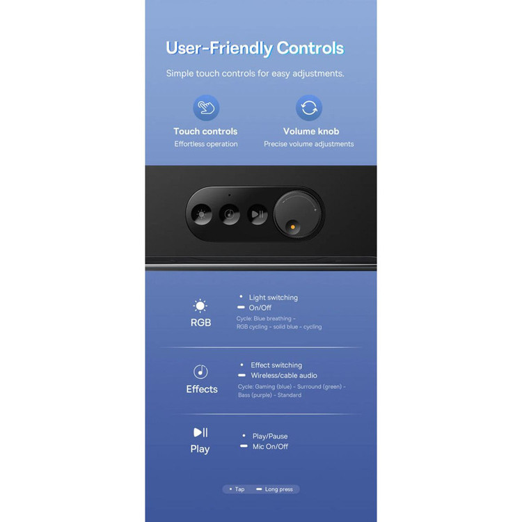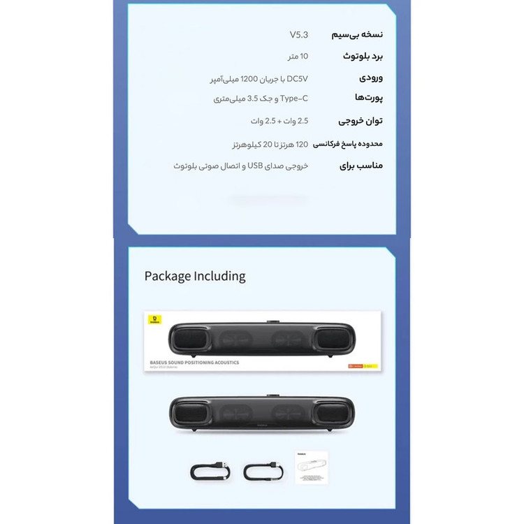 جنس:ABS + PC + فلز / محدوده فرکانس:120 هرتز - 20 کیلوهرتز / برد: حدود 10 متر / دارای جلوه های صوتی و نورپردازی RGB / مجهز به میکروفون داخلی