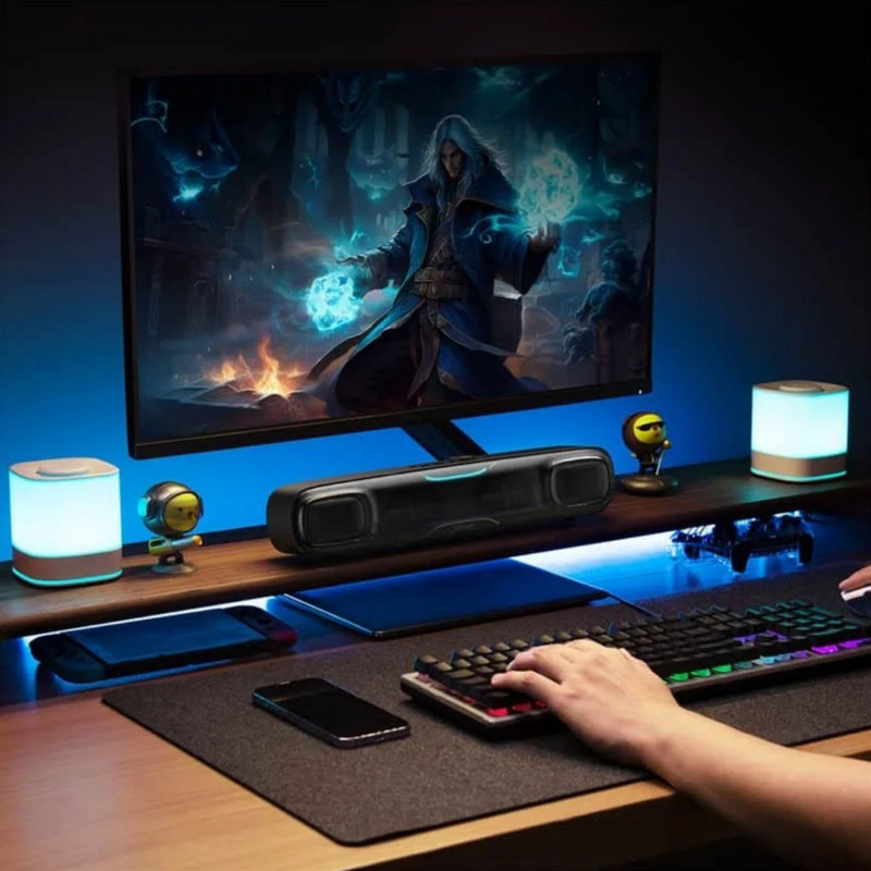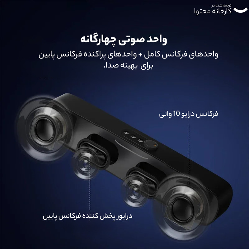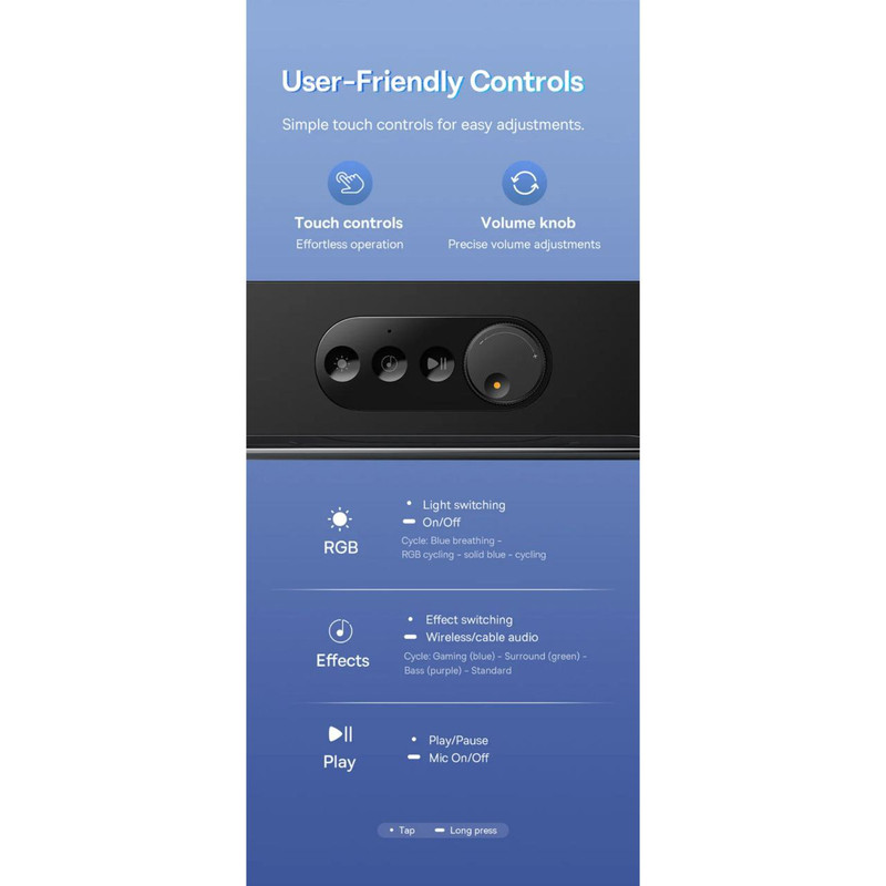 جنس:ABS + PC + فلز / محدوده فرکانس:120 هرتز - 20 کیلوهرتز / برد: حدود 10 متر / دارای جلوه های صوتی و نورپردازی RGB / مجهز به میکروفون داخلی