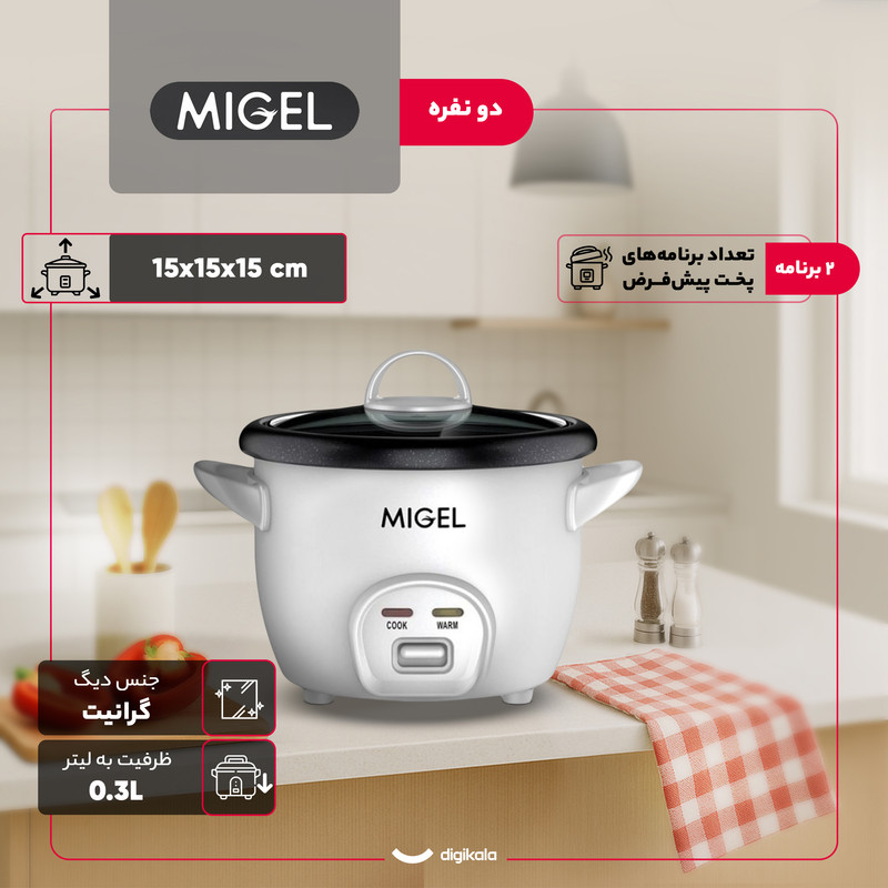 پلوپز میگل مدل GRC 115 یک دستگاه ساده و کارآمد است که برای پخت پلو و سایر غذاها طراحی شده است. این پلوپز از نوع تک حالته با المنت پایین بهره میبرد و توان مصرفی آن ۲۵۰ وات است. ظرفیت داخلی آن ۰.۳ لیتر و مناسب دو نفر است، که این ویژگی آن را به گزینهای جمعوجور برای خانوادههای کمجمعیت، دانشجویان و افراد شاغل تبدیل میکند. بدنه این پلوپز از آلومینیوم با روکش گرانیت ساخته شده و در عین سبکی، مقاومت و دوام خوبی دارد. دیگ داخلی با پوشش نچسب گرانیتی، از چسبیدن غذا جلوگیری کرده و پخت یکنواخت را ممکن میکند.