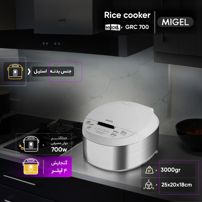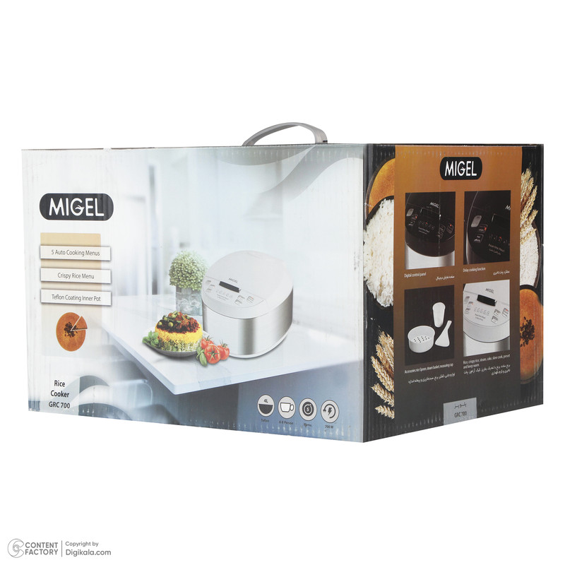 یکی از بهترین انتخابها برای یک آشپزی حرفهای و سریع، پلوپز میگل مدل GRC 700 است. این پلوپز با قدرت 700 وات و ظرفیت چهار لیتر دارای طراحی مقاوم و بدنه استیل که عمر طولانی و مقاومت بالا را تضمین میکند. دیگ نچسب تفلون این پلوپز، پخت یکدست و بدون چسبندگی غذا را برای شش تا هشت نفر فراهم میکند و عملکرد پخت تأخیری، امکان تنظیم زمان پخت را به شما میدهد. پلوپز میگل با حرارتدهی همزمان از کف و دیوارهها، کیفیت و سرعت پخت را بهبود میبخشد. همچنین، صفحه نمایشگر LED موجود در این پلوپز اطلاعات منوی پخت را نمایش میدهد و کار را برای همه افراد حتی سالمندان آسان میکند. پنج منوی پخت خودکار شامل برنج با تهدیگ، برنج ساده، بخارپز/کیک، پخت با تاخیر و آرامپز دارد که تنوع غذایی شما را افزایش میدهد. علاوهبر پخت برنج، این محصول برای بخارپز کردن سبزیجات، گوشت و حتی پخت کیک نیز مناسب است. استفاده از این پلوپز باعث صرفهجویی در هزینهها و زمان شما خواهد شد.