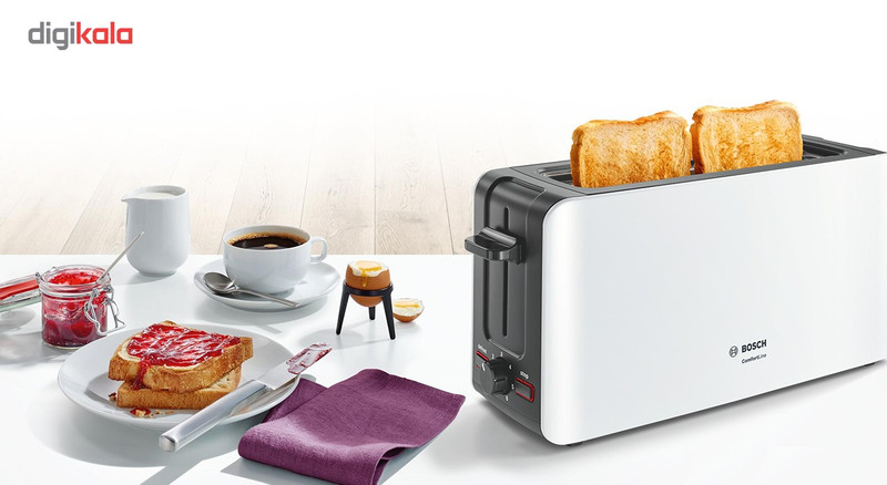 بوش تولیدکننده لوازم خانگی مطرح در جهان، توستر دیگری را با مدل TAT6A001 تولید کرده و در اختیار کاربران قرار داده است. در این مدل از توسترهای بوش دو جایگاه برای قرار دادن نان در نظر گرفته شده تا بتواند با سرعت و کیفیتی قابلقبول نان را برشته و گرم کند. خردهنانها در کشوی جمعآوری مخصوص این کار میریزند که بهراحتی از دستگاه بیرون میآید تا در استفادههای بعدی دود و سوختگی ایجاد نشود. قابلیت یخزدایی و گرم کردن مجدد نیز در این دستگاه در نظر گرفتهشده است. با استفاده از قابلیت تنظیم حرارت این دستگاه میتوانید حرارت را بر روی میزان دلخواهتان تنظیم کرده و از سوختگی نان جلوگیری کنید. همچنین قابلیت قطع خودکار و دکمه توقف عملیات این مدل از توسترهای بوش این امکان را فراهم میآورد تا بدون نگرانی در مورد سوختگی نان در هر زمان ممکن عملیات گرم کردن را قطع کنید. این محصول وزنی حدود 2.5 کلیوگرم دارد که میتواند مناسب باشد. اگر شما یکی از مصرفکنندگان محصولات بوش، این شرکت مطرح و معتبر تولیدکننده لوازم خانگی هستید قطعا میدانید در بازار لوازمخانگی برقی از این شرکت به نیکی یاد میشود و علاقهمندان همواره محصولات آن را بررسی و خرید میکنند.