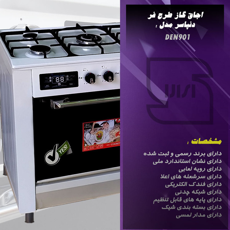 دارای برند رسمی دارای نشان استاندارد دارای رویه لعابی دارای شبکه چدنی عرض 90 دارای پایه و تایمر