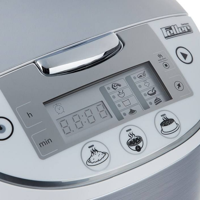 مولتی کوکر «فلر» مدل «RC99» از دستگاههای مدل جدیدی است که جای خود را در آشپزخانهها بازکرده است. ظرفیت این دستگاه بالاست و میتواند برای یک خانواده یا گروه پرجمعیت هم مورداستفاده قرار گیرد. این محصول تنها یک پلوپز نیست؛ بلکه قابلیتهای زیادی دارد. عملکرد پخت برنج، تهیهی تهدیگ، حلیم، سوپ، بخارپزکردن، فرنی، ماستبندی، آرامپزکردن و تهیهی ماکارونی و پاستا، تعدادی از قابلیتهای این دستگاه است. قابلیت گرمکردن مجدد برنج بسیار کارآمد است و پلوی سرد را مانند پلوی تازه پختهشده، آمادهی صرف میکند. نمایشگر باکیفیت دیجیتال و درشت این محصول، امکان بهرهمندی از امکانات آن را راحتتر میکند. در دستگاه با یک دکمه باز میشود و ظرف اصلی داخل آن قرار میگیرد. فیلتر روی در به طریقی متصل شده که بهراحتی میتوان آن را خارج کرد تا در دستگاه از سمت داخل تمیز باشد. روکش ظرف، تفلون و درجهبندیشده است. از سایر لوازم جانبی این دستگاه چندکاره، ظرف بخارپز آن است که میتوان برای تهیهی سبزیها و گوشت پخته از آن استفاده کرد. کفگیر و ملاقهی مخصوص هم به همراه این محصول عرضه میشود که از قابلیت قرارگیری در کنار دستگاه برخوردار است. کابل برق از بدنه جداست و حملونقل آن بهراحتی انجام میشود. بدنهی دستگاه همواره خنک است و خطری ایجاد نمیکند. روی بدنه یک دستگیره هم وجود دارد که برای حمل مصرف میشود.