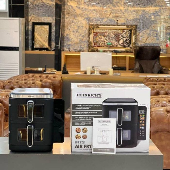 سرخ کن هنریچ مدل 8231 دارای دو سبد مجزا با ظرفیت 5.5 لیتر است که برای خانوادههای پرجمعیت یا مهمانیها ایدهآل است.