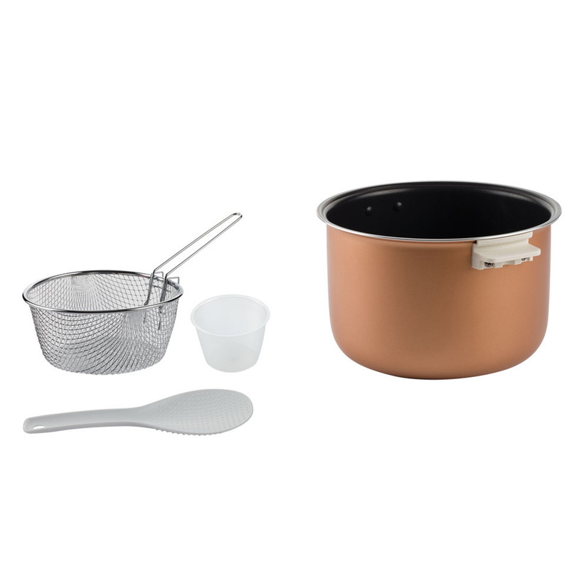 بدنه دستگاه از ترکیب استیل ضدزنگ و پلاستیک مقاوم ساخته شده که دوام بالا و ظاهر مدرنی به آن بخشیده است. دیگ داخلی با روکش تفلون نچسب طراحی شده تا مواد غذایی به آن نچسبند و تمیز کردن آن بهسادگی انجام شود. وزن ۲.۲ کیلوگرم در کنار ابعاد ۳۰×۳۰×۳۰ سانتیمتری، این مدل را به گزینهای کاربردی و قابلحمل برای استفاده روزانه تبدیل کرده است.