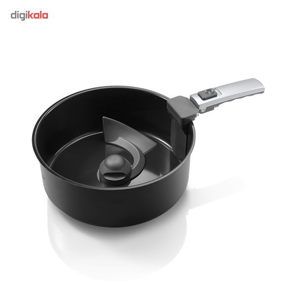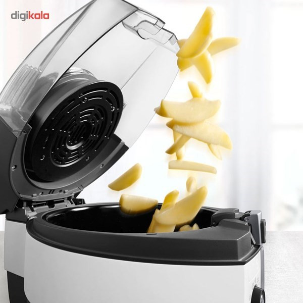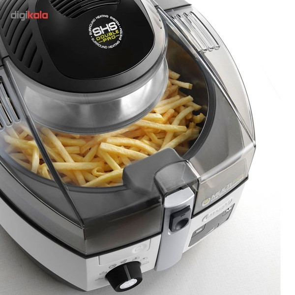 سرخکن چندکارهی «دلونگی» مدل «FH1394» که بهعنوان سرخکن کمروغن شناخته میشود، با هدف حفظ سلامت مصرفکننده تولید و به بازار عرضه شده است. نیاز به مصرف فقط 14 میلیلیتر روغن برای هر کیلوگرم سیبزمینی پوستکندهی تازه در این دستگاه، بیش از پیش کاهش مصرف روغن در غذاهای شما را تضمین میکند. مهمترین ویژگی منحصربهفرد این سرخکن چندکارهی دلونگی که در هیچیک از کالاهای همانند بازار به چشم نمیخورد، وجود المنتِ بالا (1400 وات) و پایین (800 وات) است که امکان پخت غذاهای متنوع را برای شما مهیا میسازد. سرخکن FH1394، دیگی با پوشش سرامیک دارد و میتواند با همزنِ پارویی جداشدنی یا بدون آن، عمل پخت را انجام دهد. این دستگاه در کنار توانایی سرخکردن، امکان پختِ غذاهایی همچون پیتزا، کیک و انواع پاستا را نیز دارد. غذاهایی که نیاز به همزدن دارند، مانند تکههای مرغ یا سیبزمینی را میتوان بهراحتی سرخ کرد یا حتی غذاهایی که نیاز به همزدن ندارند، مانند پیتزا و کیک نیز بهخوبی قابل پخت هستند که از این نظر کاملا منحصربهفرد است. دیگر ویژگیِ مولتی فرای دلونگی، پنجرهی دید بزرگ آن است که به شما اجازه میدهد روند پخت را بدون ازدستدادن حرارت بررسی کنید. گنجایش این دستگاه 1.5 کیلوگرم برای سیبزمینی فریز شده و 1.7 کیلوگرم برای سیبزمینی تازه پوستکنده است. ظرف پخت گرد بوده و دستگیره هم برای آن در نظر گرفته شده است. روی ظرف از روکش سرامیکی بهره میبرد. روی سرخکن چندکاره دلونگی مدل FH1394 یک نمایشگر و در کنار آن، دکمههای کنترلی تعبیه شده است تا کار با دستگاه سادهتر شود. بدنهی این سرخکن در تمام طول فعالیت خنک باقی میماند و خطری ایجاد نمیکند. دلونگی از معتبرترین تولیدکنندگان لوازم خانگی برقی پیشرفته و کاربردی است که در سراسر جهان شناخته شده است.