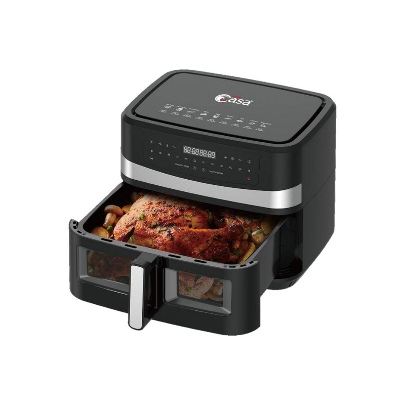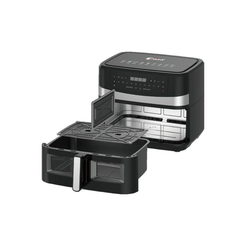 سوپر کاسا یکی از برندهای معتبر در زمینهی تولید لوازم خانگی و برقی است که چندین سال است در این حوزه فعالیت میکند. یکی از محصولات بینظیر این کمپانی، سرخ کن های بدون روغن است که در مدلهای مختلفی تولید شده است. سرخ کن های بدون روغن با تزریق هوای داغ و گردش آن در داخل محفظه، سبب آماده شدن و مغز پخت شدن غذاها میگردد. این سرخکن ها مصرف روغن را 80-90 درصد کاهش میدهند و سلامت بدن شما را برای عمری طولانی تضمین میکنند. سرخ کن بدون روغن دیجیتال دو مخزن CA-111 یکی از محصولات کمپانی سوپر کاسا است که سبب کاهش 80 درصدی مصرف روغن شده و غذاها را با میزان مصرف بسیار پایین یا بدون روغن سالم آماده میکند. سرخ کن دارای توان مصرفی 2600 وات است که باعث آماده شدن غذاهای دلخواه شما در زمانی کوتاه میشود. گنجایش مخزن این سرخ کن 10 لیتر است که به کمک آن میتوانید دوستان یا خانواده را به صرف یک وعده غذای لذیذ دعوت نمایید. پنل کنترلی این دستگاه به صورت لمسی طراحی شده است و با یک لمس غذاهای مورد علاقهی شما را آماده میکند. سرخ کن بدون روغن دیجیتال دو مخزن CA-111 دارای سیستم تایمر و تنظیم دما است که با تغییر آن میتوانید زمان و دمای غذای خود را تنظیم کنید. هواپز بدون روغن دیجیتال سوپر کاسا دارای طراحی بدنهی منحصر به فردی بوده که از جنس پلاستیک محکم و استیل ساخته شده و از دوام و ماندگاری بالایی برخوردار است. لازم به ذکر است در این سرخ کن قابلیت پخت همزمان دو مواد غذایی مختلف با تنظیمات مختلف وجود دارد و همچنین میتوانید حجم بالایی از مواد غذایی را در مخرن 10 لیتری سرخ کن قرار دهید و براحتی با منوهای پخت مختلف دستگاه که شامل ده منوی پخت متنوع میباشد براحتی مواد مورد نظر را در سریع ترین زمان و سلامت ترین حالت در اختیار داشته باشید