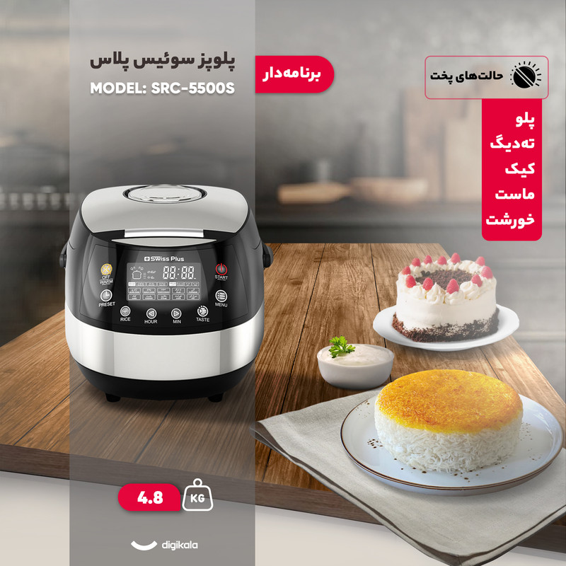 پلوپز سوئیس پلاس مدل SRC-5500S یکی از محصولات چندکاره و قدرتمند بازار است که با طراحی مدرن و ظرفیت ۱۰ نفره، پاسخگوی نیاز خانوادههای پرجمعیت و مهمانیهای خانگی خواهد بود. این دستگاه با توان مصرفی ۹۰۰ وات و سیستم گرمایش المنت پایین، پختی یکنواخت و مطمئن را تضمین میکند.