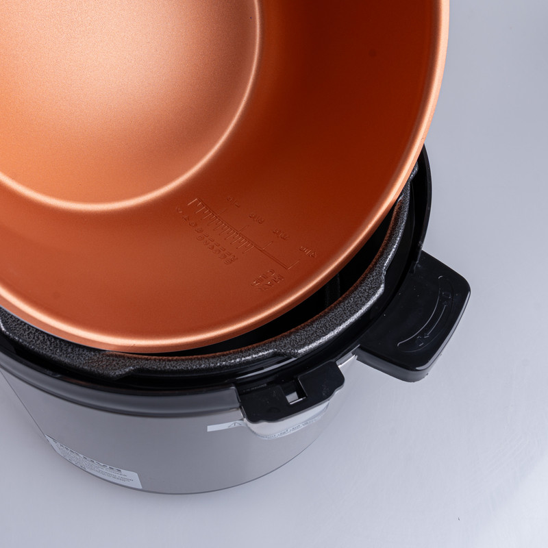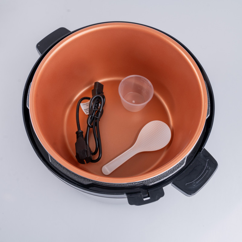 دارای سیستم ایمنی چندلایه شامل سوپاپ اطمینان فشار، قطعکن اتوماتیک حرارت، قفل درب در هنگام فشار بالا، و محافظ دمایی برای جلوگیری از سوختگی یا انفجار.