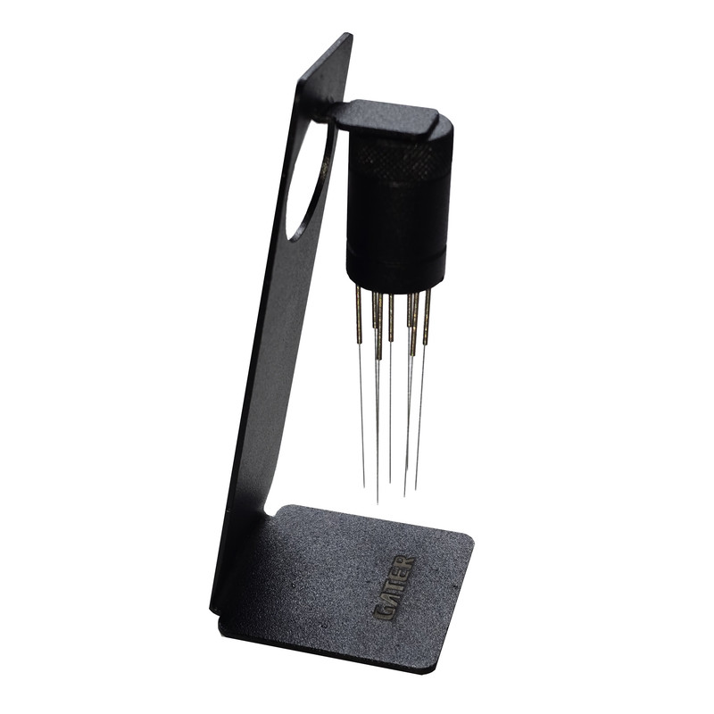 نیدل قهوه وسیلهای برای باریستاهاست که به کمک آن قهوه را در پرتافیلتر توزیع و آن را به صورت یکنواخت پخش میکنند. با استفاده از نیدل قهوه میتوانید از چسبیدن پودرهای قهوه به هم و گلولهای شدن آنها جلوگیری کنید.این ابزار ساده اما کارآمد است که به شما کمک میکند تا یک اسپرسو یا قهوه دمی باکیفیتتر و خوشطعمتر تهیه کنید.این محصول دارای 7 سوزن منعطف و فنر دار می باشد که به وسیله مگنت به پایه خود متصل می شود.