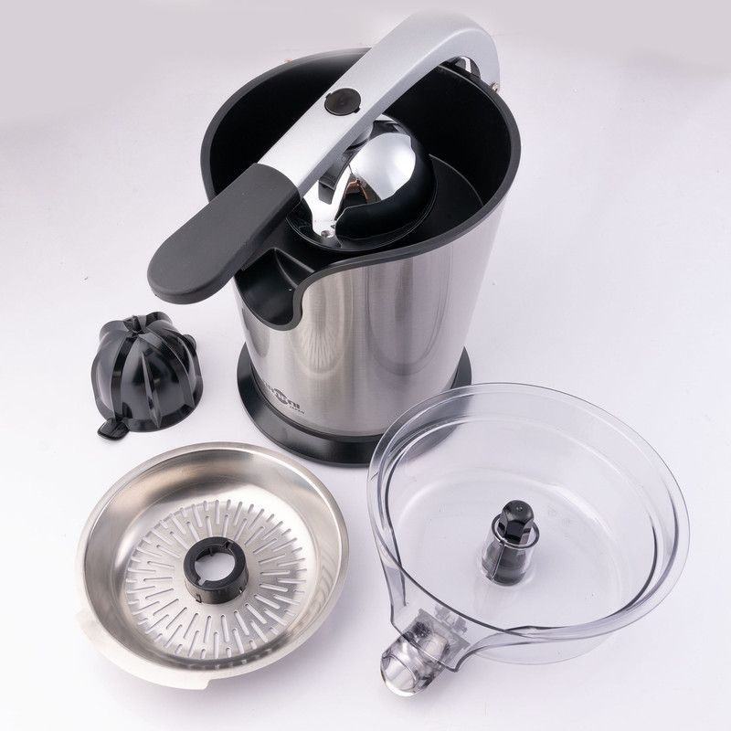 یکی از بهترین راه ها برای افزایش ویتامین C در بدن، مصرف آب میوه های تازه است. برای سهولت به یک آب مرکبات گیری مناسب نیاز است. دستگاه آب مرکبات گیری برای آبگیری انواع مرکبات مانند پرتقال، لیمو، گریپ فروت و همچنین میوه هایی مانند انار کاربرد دارد. آب مرکبات گیری نانانی مدل NCJ-042 یک دستگاه کارآمد و با کیفیت است که با ویژگی های خاص خود، تجربه ی لذت بخشی را برای شما فراهم می کند. این محصول با توان 200 وات، قادر است به سرعت و بدون صدا، آب انواع مرکبات را استخراج کند. دارای دو سایز مختلف سری است که به شما امکان می دهد، مرکبات با سایزهای را به کار ببرید. به دلیل ماهیت عملکرد دستگاه های آب مرکبات گیری و تماس قطعات آنها با اسید انواع مرکبات، از استیل ضدزنگ در طراحی آن استفاده شده است تا آبمیوه کاملا خالص و با طعم طبیعی باشد. اجزای دستگاه قابل جداسازی هستند و به راحتی می توان آن ها را پس از هربار استفاده شست. اهرم دستگاه از آلیاژ ریختگی آلومینیوم ساخته شده که کاملا مقاوم و مستحکم است و با فشار اندک بدون خستگی دست می توان حجم دلخواه میوه را آب گرفت. طراحی زیبا و مخروطی سیلندر نشان دهنده ی توجه به جزئیات در ساخت این دستگاه است. با خرید آب مرکبات گیری نانانی مدل NCJ-042، شما می توانید هر روز لذت نوشیدن آبمیوه تازه و سالم را تجربه کنید.
