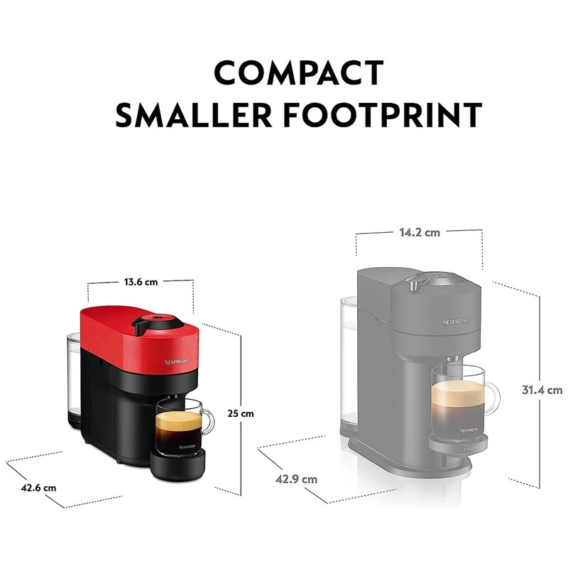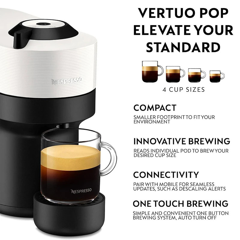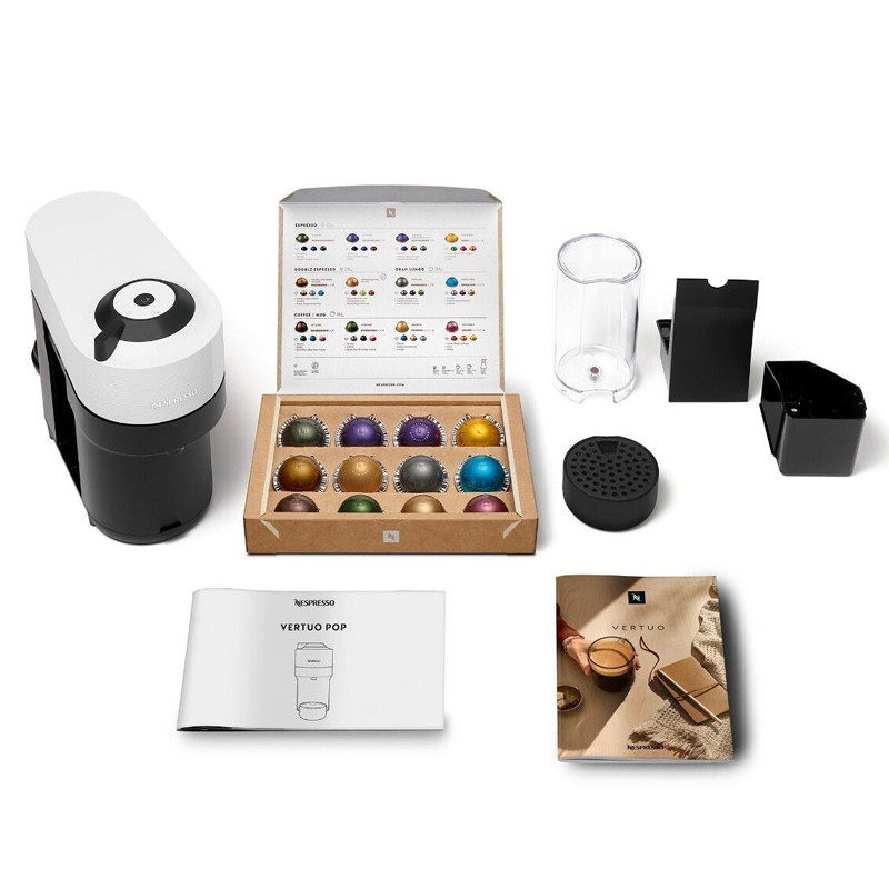 این دستگاه، با طراحی زیبا و جذاب خود و قابلیت تهیه انواع مختلفی از نوشیدنی ها را دارد. نوشیدنی هایی که می توانید با این اسپرسوساز تهیه کنید شامل:اسپرسو،اسپرسو دبل،گرن لانگو و ماگ در حجم های 40/80/150/230 میلی لیتر می باشد. به دلیل وجود این ویژگی ها دستگاه قهوه ساز ورتو پاپ توانست در کمترین زمان محبوبیت زیادی کسب کند. دستگاه ورتو پاپ نسپرسو دارای تکنولوژی سانتریفیوژ است. فناوری Centrifusion با سرعت بالایی کپسول را چرخانده و قهوه ای با کرم فوق العاده تولید می کند. همچنین این اسپرسوساز دارای قابلیت های زیادی است. برخی از ویژگی های این دستگاه شامل : تنظیم حجم قهوه،فشار آب قابل تنظیم،خاموشی خودکار می باشد. با داشتن مخزن آب 600 میلی لیتری و قدرت 1300 وات عملکرد قوی ای دارد. در 30 ثانیه به سرعت گرم می شود و در کمتر از 1 دقیقه قهوه ی شما آماده ی سرو می باشد. اسپرسوساز نسپرسو ورتولاین پاپ POP،در حال حاضر یک دستگاه محبوب از محصولات شرکت نسپرسو است. به دلیل کیفیت ساخت بالا ،طراحی زیبا و عملکرد عالی، برنده برخی جوایز مهم شده است. به طور مثال در سال 2020 این محصول جایزه ” Red Dot Design Award ” را دریافت کرده است. تفاوت Vertuo و مدل های دیگر نسپرسو اسپرسوساز های کپسولی نسپرسو بر اساس عملکرد به دو دسته تقسیم می شوند. اوریجینال لاین OriginalLine و ورتو لاین VertuoLine. تفاوت این دو سری در نحوه تهیه اسپرسو و عملکرد دستگاه ها می باشد. در سری اوریجینال لاین، با بهره گیری از پمپ های بخار اسپرسو تهیه می شود اما در سری ورتو لاین تهیه قهوه با استفاده از یک سانتریفیوژ صورت می گیرد. عملکرد دستگاه Vertuo pop بعد از اینکه کپسول ورتو را داخل Vertuo pop قرار دهید و اهرم را ببندید، با فعال شدن دستگاه کپسول تا 7000 دور در دقیقه میچرخد و به این ترتیب قهوه آسیاب شده را با آب مخلوط می کند که نتیجه آن یک اسپرسو بی نظیر با کرمای عالی و در اندازه های بزرگ تر است. نوشیدنی های قابل تهیه Vertuo pop توانایی تهیه 5 فنجان شامل آلتو (414 میلی لیتر)، ماگ (230 میلی لیتر)، گرن لونگو (150 میلی لیتر)، اسپرسو دوبل (80 میلی لیتر) و اسپرسو (40 میلی لیتر) می باشد که با استفاده از سه نوع کپسول : کپسول بزرگ برای آلتو و ماگ، متوسط برای گرن لونگو و اسپرسو دوبل و یک عدد کوچک برای اسپرسو قابل تهیه هستند.