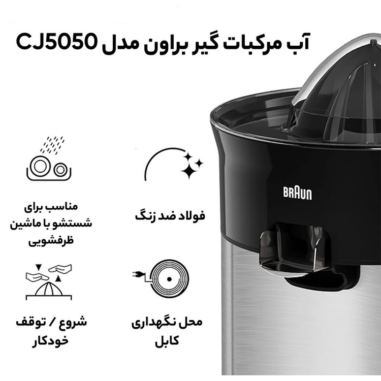 سایر توضیحات: توان مصرفی 60 وات، دهانه بلند به گونه ای طراحی شده است که به راحتی برای لیوان های بلند قابل استفاده میباشد، دارای دور چپ گرد و راست گرد، قابلیت آبگیری لیمو ترش تا مرکبات درشت(گریفروت)، حالت شروع بکار دستگاه بصورت فشاری، سیستم ضد چکه خروجی آبمیوه