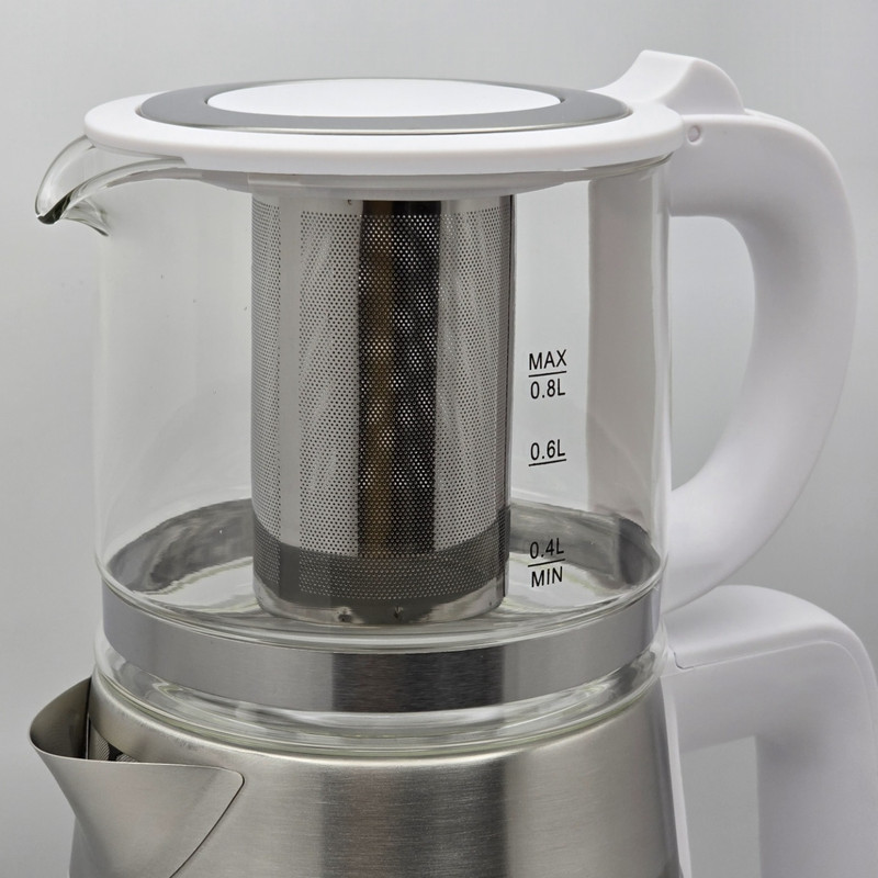 کتری از استیل ضد زنگ مرغوب ساخته شده که مقاومت بالایی در برابر زنگزدگی و حرارت دارد و ظاهر آن برای مدت طولانی براق و زیبا میماند. قوری از جنس شیشه مقاوم در برابر حرارت تولید شده و به کاربر امکان مشاهده مرحله دم کشیدن چای را میدهد. فیلتر داخلی قوری که از استیل ساخته شده، مانع ورود تفاله به نوشیدنی میشود و به راحتی قابل شستوشو است. ظرفیت کتری دو لیتر و ظرفیت قوری هشت دهم لیتر است که برای مصرف روزانه خانوادهها و پذیراییهای کوچک مناسب خواهد بود.