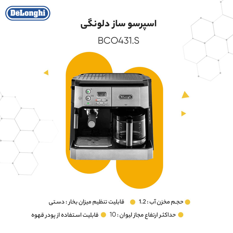 با توجه به ویژگیهای بینظیر و کیفیت بالای تولید قهوه، اسپرسو ساز دلونگی مدل BCO431.S را میتوان به¬عنوان یکی از بهترین گزینههای بازار در دستگاههای تهیه اسپرسو معرفی کرد.