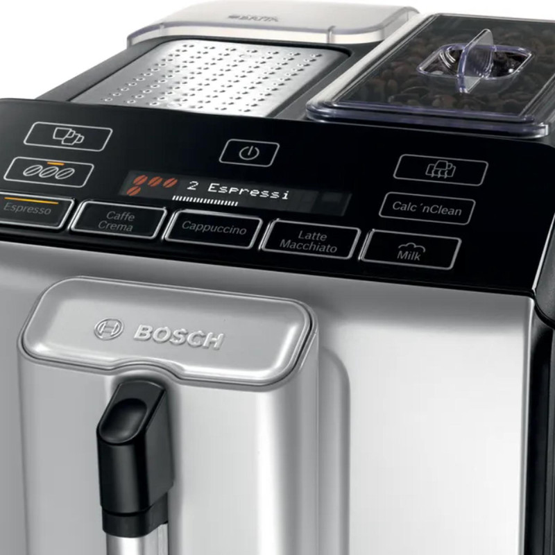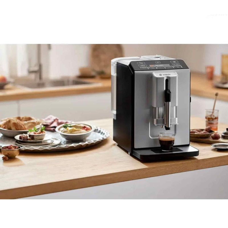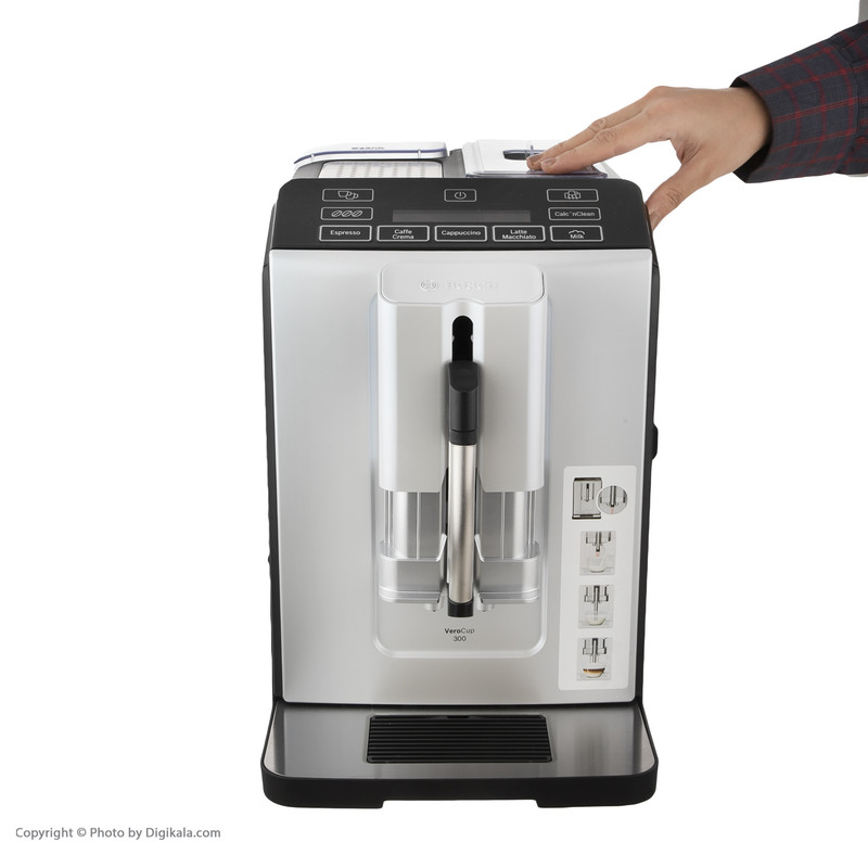 این روزها اسپرسوسازها در انواع متنوع و توسط تولیدکنندگان مختلفی روانه بازار میشوند و انتخاب یک دستگاه مناسب کار نسبتاً دشواری به نظر میرسد. یکی از این تولیدکنندگان، شرکت «بوش» (Bosch) است. مدل «VeroCup 300 TIS30351DE» از جمله محصولات این برند است که از طراحی زیبایی برخوردار است. این محصول به لطف نازل بخار با فشار 15 بار میتوان از آن برای تهیه نوشیدنیهای مختلف از جمله اسپرسو، لاته ماکیاتو و کاپوچینو استفاده کرد. پنل در نظر گرفته شده برای این دستگاه، لمسی است؛ بهاینترتیب تنها با فشردن یک کلید نوشیدنی دلخواه خود را انتخاب نمایید. قرار گرفتن سینی چکهگیر در قسمت پایین دستگاه از کثیفشدن سطح میز جلوگیری کرده و نظافت دستگاه را آسان میکند. اسپرسوساز VeroCup 300 از قابلیت خاموشی خودکار بهره میبرد و پس از اتمام زمان هر عملیات بهصورت خودکار خاموش میشود. اگر شما هم از طرفداران پروپاقرص قهوه هستید اسپرسوساز بوش مدل VeroCup 300 میتواند گزینه مناسبی برای شما باشد.