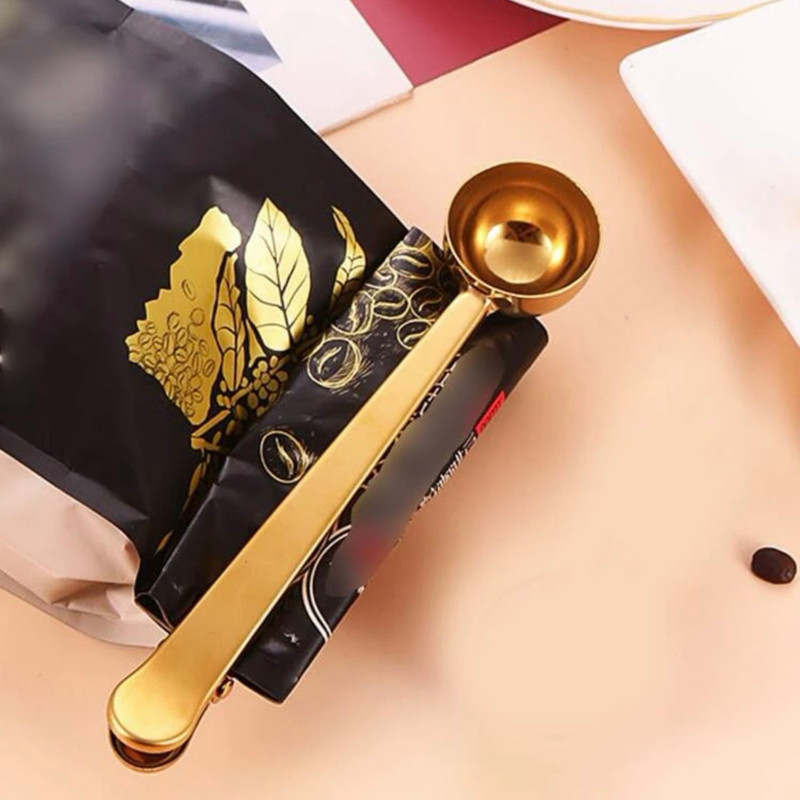 قاشق پیمانه و گیره پاکت قهوه و چای طرح Dolla از جنس استیل ضد زنگ با دو رنگ طلایی و نقره ای علاوه بر اینکه بسیار کاربردی می باشد یک دیزاین لوکس به پاکت های چای و قهوه به نمایش می گذارد. با این قاشق می توانید قهوه و چای را پیمانه کرده و با استفاده از گیره دسته بلند، درب پاکت قهوه و چای را به طور کامل بست تا از ورود هوا و از بین رفتن کیفیت چای و قهوه جلوگیری کند.
