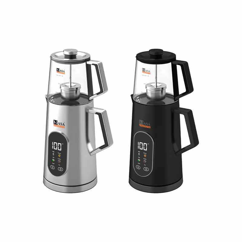 چایساز ناسا الکتریک مدل NS-526 با توان 1500 وات، انتخابی ایدهآل برای افرادی است که به کیفیت و راحتی اهمیت میدهند. این دستگاه با طراحی دوجداره از استیل ضد زنگ ساخته شده که علاوه بر حفظ دمای آب، از گرم شدن بیش از حد بدنه خارجی جلوگیری میکند. ظرفیت کتری 1.7 لیتر و قوری شیشهای بروسیلیکات مقاوم به حرارت آن 1 لیتر است که امکان تهیه مقدار مناسبی از چای را فراهم میکند.