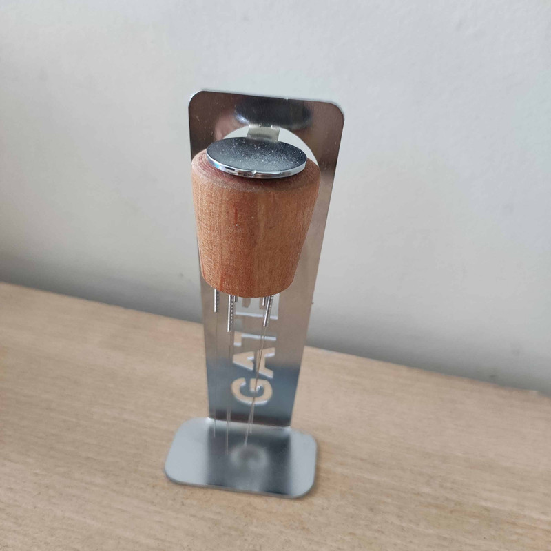 نیدل یکی از تجهیزات جانبی دستگاه اسپرسوساز است که برای جلوگیری از چسبیدن پودرهای قهوه به هم استفاده می شود. دسته این نیدل چوبی است و سوزن های آن فلزی می باشد. سوزن ها فنری هستند که در مقابل فشار مقاوم تر باشند. نیدل مگنتی است و دارای یک استند فلزی است.