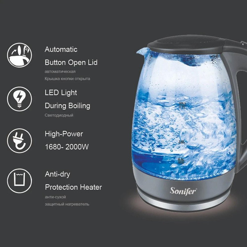 دارای نور آبی روشن درب کتری به وسیله دکمه فشاری باز میشود