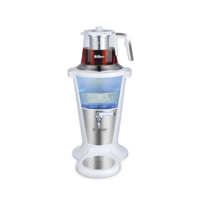 سماور برقی مدل «TS301» از محصولات کارآمد و خوشساخت شرکت «فلر» است که به کمک آن بهراحتی میتوانید چای یا سایر دمنوشهای مورد علاقهی خود را تهیه کرده و برای مدتی طولانی گرم نگه دارید. دستگیرههای پلاستیکی این سماور خاصیت عایق دارد. در طراحی بدنهی دستگاه از استیل ضدزنگ استفاده شده است که به زیبایی آن افزوده است. همچنین طراحی بدنهی سماور سهلیتری این دستگاه به صورت شفاف، این امکان را فراهم میسازد که کاربر قادر به مشاهدهی کارکرد دستگاه باشد. قوری سماوربرقی فلر مدل TS301 از جنس پیرکس است و گنجایش یک لیتر را دارد. درپوش سماور بهگونهای طراحی شده که زمان قرارگیری قوری روی آن، مسیر انتقال بخار باز میماند و قوری به بهترین شکل گرم نگه داشته میشود. استفاده از این سماور، فوقالعاده ساده بوده و برای روشنشدن کافی است، کلید پشت آن را فشرده و حالات جوشاندن آب سماور یا گرمنگهدارنده را از طریق دکمهی تعبیهشده روی دسته انتخاب کنید. در مدل TS301 سینی چکهگیر هم در نظر گرفته شده است. بهرهمندی از سیستم خاموششدن خودکار علاوهبر حفظ امنیت کار با دستگاه، موجب صرفهجویی در مصرف انرژی میشود. همچنین برای این مدل سیستم محافظی در نظر گرفته شده است که از گرمشدن بیش از حد دستگاه و کارکرد بدون آب کتری جلوگیری میکند.