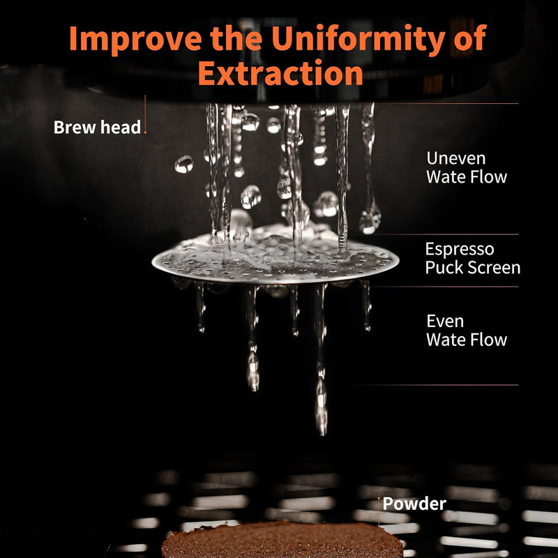 توزیع یکنواخت آب: پاک اسکرین به توزیع یکنواخت آب در سطح قهوه کمک میکند. این امر باعث میشود تمام قسمتهای قهوه به طور مساوی عصارهگیری شوند و از ایجاد کانالسازی (Channeling) که منجر به طعم نامتعادل و تلخ اسپرسو میشود، جلوگیری شود.
