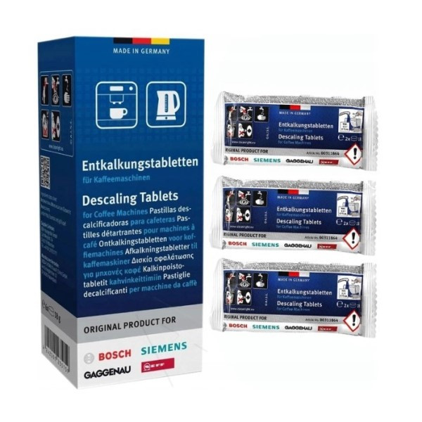 رسوب گیری اسپرسوساز موجب خواهد شد تا رسوب و جرم ناشی از گردش آب در مجراهای اسپرسوساز پاک شده و عملکرد دستگاه در ساخت قهوه بهبود یابد و مانع از ایجاد ارور در دستگاه گردد . این مجموعه مناسب برای اسپرسوساز های بوش ، قهوه ساز زیمنس ، نف ، گاگنو ، قهوه ساز فیلیپس ، آاگ ، الکترولوکس ، قهوه ساز نوا ، اسپرسوساز فیلیپس ، قهوه ساز اسمگ ، قهوه ساز ویرپول ، فلر ، آریستون ، ایندزیت و…. میباشد و شما میتوانید از آن برای دیسکیل انواع برند اسپرسوساز و قهوه ساز استفاده نمائید. قرص Descaling بوش علاوه بر اسپرسوساز و قهوه ساز میتواند برای جرمگیری کتری های برقی و هر وسیله که آب را گرم میکند استفاده گردد و به راحتی قادر است تمامی رسوب ناشی از آب را جرمگیری نماید. برای جرمگیری اسپرسوساز هر بار دو عدد قرص کالک را طبق دستور العمل و راهنمای محصول برای جرمگیری دستگاه استفاده نمائید . برای جرمگیری کتری و سایر وسایل برق مثل سماور برقی و بخار شور از یک عدد قرص کالک استفاده نمائید .