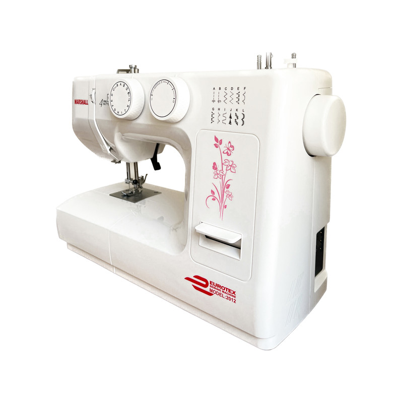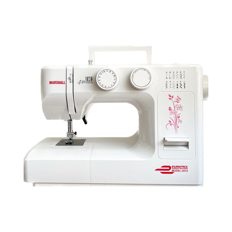چرخ خیاطی مارشال مدل EUROTEX 2012 از محصولات یوروتکس (UEROTEX) مارشال و از تولیدات صادراتی و با کیفیت شرکت نیکو دوخت ماشین و به سفارش اروپا UERO میباشد. چرخ خیاطی مارشال تحت لیسانس ژاپن و با قطعات اصلی ژاپنی و تایوانی در ایران تولید و مونتاژ میگردد. شرکت نیکو دوخت ماشین نماینده انحصاری چرخ خیاطی و اتو پرسهای مارشال در ایران توانسته است با تکیه بر مهندسین با تجربه و دستگاههای فوق پیشرفته خود ، وبا کسب استانداردهای جهانی چرخ خیاطی ای را با نام تجاری مارشال سری یوروتکس (EUROTEX) به سفارش اروپا تولید کند و به چندین کشور اروپایی صادر نماید . مدل 2012 از سری محصولات یوروتکس شرکت مارشال است که مدل با کیفیتی است که دارای 12 مدل طرح حاشیه دوزی و قابلیت دوخت ترکیبی تا 24 مدل و گلدوزی بی نهایت با کارگاه گلدوزی است. این دستگاه پیشرفته تمامی امکانات خیاطی از قبیل ساده دوزی و زیگزاگ ، رفو و تیکه دوزی ، نوار دوزی و قیطانی دوزی ، سردوزی و لبه دوزی وزیپ دوزی ، دگمه دوزی و جا دکمه دوزی و ... را دارد . این دستگاه جزو دستگاههای اقتصادی شرکت مارشال میباشد که مناسب جهیزیه و کارهای خانگی میباشد. چرخ خیاطی مارشال مدل EUROTEX 2012 دارای دسته روی بدنه است که حمل و نقل دستگاه را آسان تر میکند. این دستگاه دارای سیستم بازو آزاد میباشد که دوخت پارچه های حلقوی همانند آستین ، دمپای شلوار ، یقه و... را اسانتر میکند این دستگاه دارای لامپ LED است. این دستگاه دارای کاور مشمایی میباشد