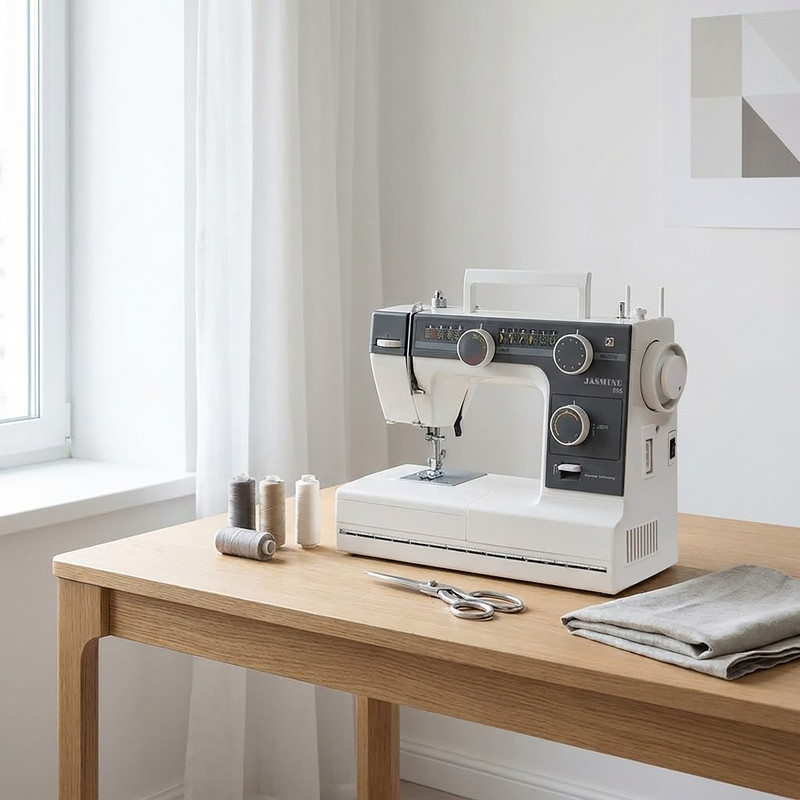 اقلام همراه چرخ خیاطی: دفترچه راهنما , پایه دوخت , پدال , پایه گلدوزی , بشکاف درز , برس پرزگیر , سوزن , پایه جادکمهدوزی , پایه زیپدوزی