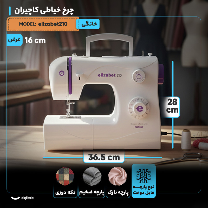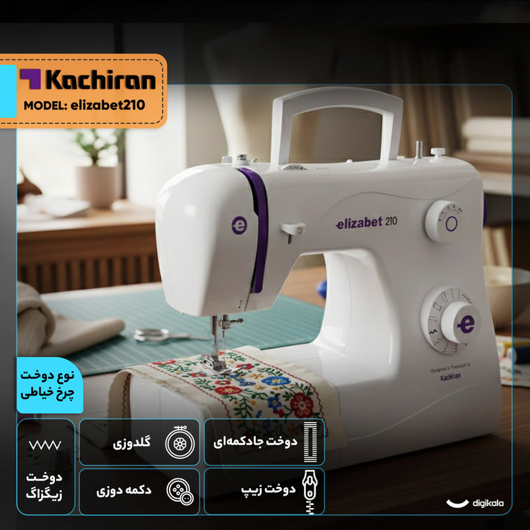 امکانات چرخ خیاطی: بازوی آزاد , اهرم کشش نخ