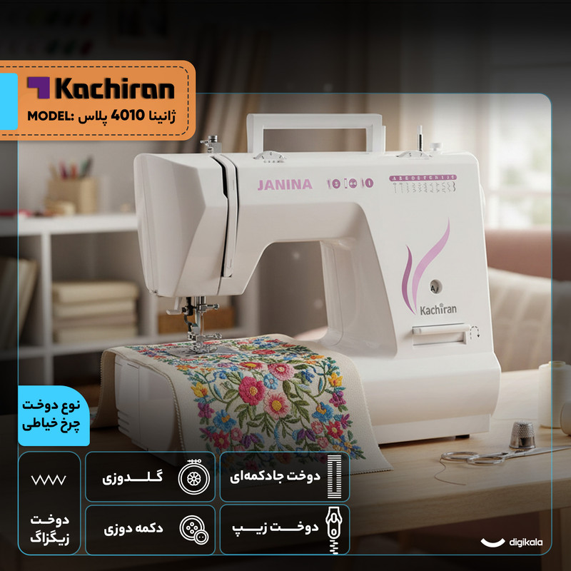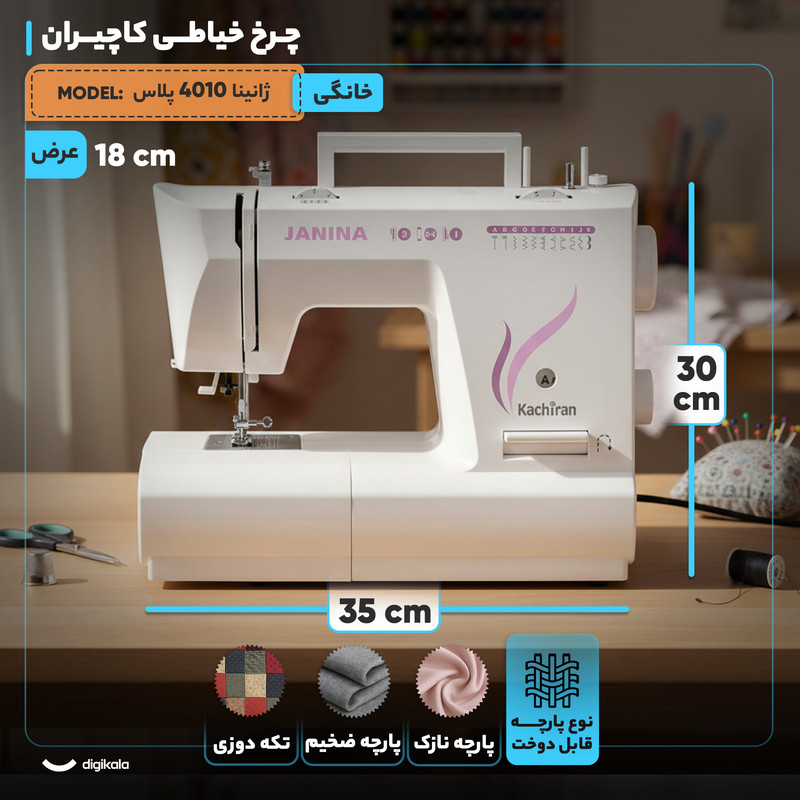 امکانات چرخ خیاطی: سوزننخکن خودکار , بازوی آزاد , اهرم کشش نخ