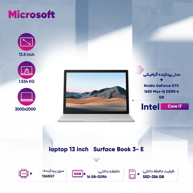 لپ تاپ 13 اینچی مایکروسافت مدل Surface Book 3-i7 16GB 256GB 1650