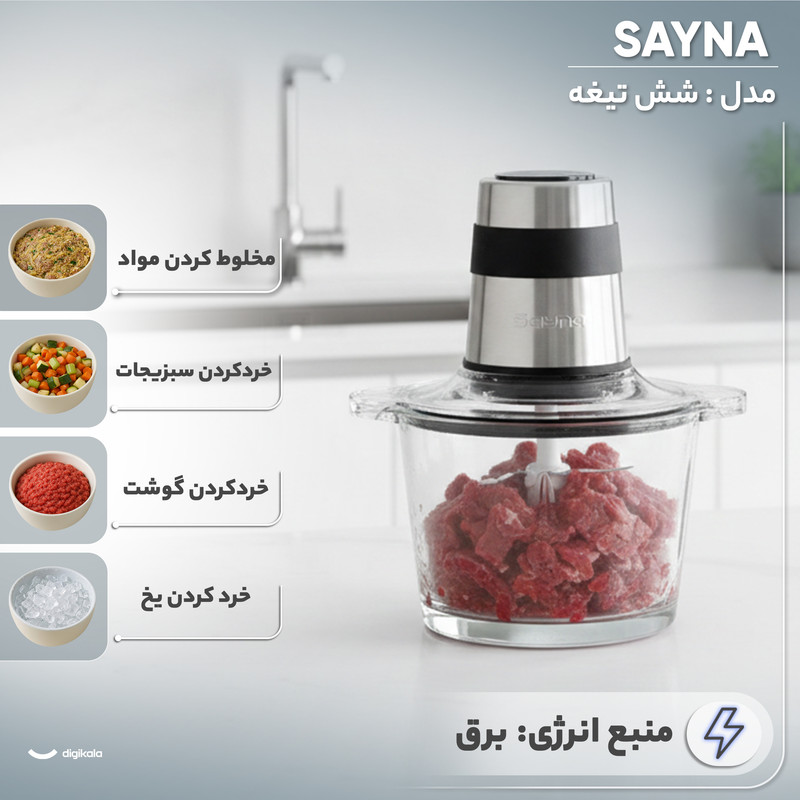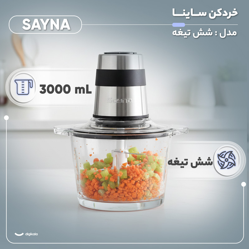 خردکن ۳ لیتری ساینا مدل شش تیغه با طراحی کاربردی و عملکرد قابلاعتماد، گزینهای مناسب برای انجام سریع کارهای آمادهسازی مواد غذایی در آشپزخانههای خانگی است. این دستگاه با تمرکز بر سادگی استفاده، ایمنی مناسب و کیفیت ساخت مطلوب، برای افرادی طراحی شده که بهدنبال خردکنی کارآمد برای مصارف روزمره هستند.