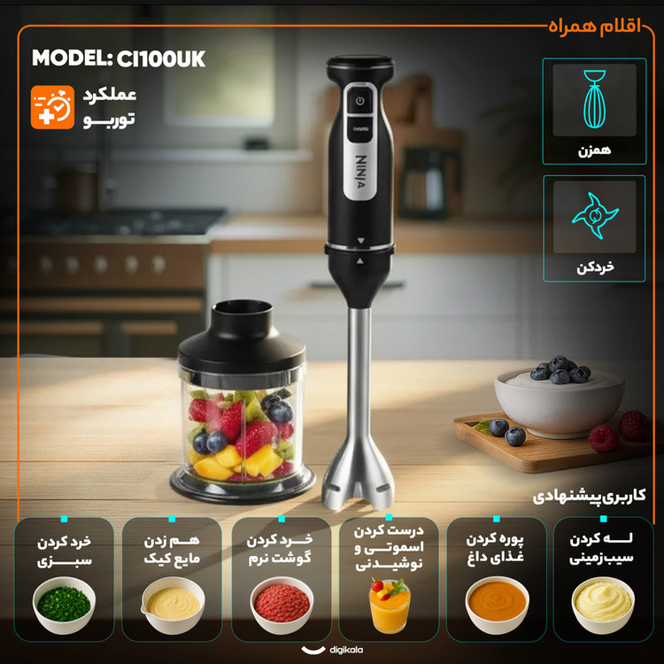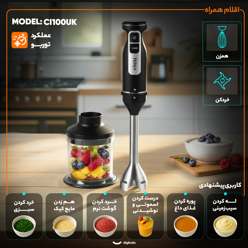 کاربری پیشنهادی: خرد کردن یخ , پوره کردن غذای داغ , خرد کردن سبزی , خرد کردن گوشت نرم , درست کردن اسموتی و نوشیدنی , هم زدن مایع کیک