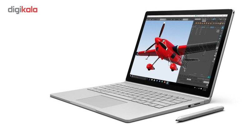 لپ تاپ 13 اینچی مایکروسافت مدل Surface Book Performance Base - S به همراه ماوس مایکروسافت مدل 2017 Arc Mouse Silver و کیف 13 اینچ وایو برزنت و داک مایکروسافتدر کنفرانس 6 اکتبر 2015 مایکروسافت همهچیز طبق پیشبینیها بود و محصولاتی که همگان از قبل انتظار داشتند یکی پس از دیگری معرفی میشدند. اما در یک سوم پایانی کنفرانس ناگهان از محصولی رونمایی شد که تمامی حضار را غافلگیر کرد؛ اولین لپتاپ مایکروسافت به نام Surface Book. این لپتاپ تبدیلپذیر 13.5 اینچی یک ترکیب بینظیر از طراحی زیبا و خلاقانه درکنار سختافزارهای قدرتمند است. لولای متصلکننده صفحهنمایش به بدنهی لپتاپ به گونهای طراحی شده که میتوان صفحهنمایش را از بدنه جدا کرد و مانند یک تبلت آن را در دست گرفت. صفحهنمایش کمنظیر این محصول از نوع لمسی با پنل IPS و روکش براق است که وضوح تصویری متفاوت برابر با 3000x2000 پیکسل دارد. با وجود براقبودن روکش، باز هم این صفحهنمایش زاویهی دید بالایی دارد و حتی در محیطهای خارجی هم میتوان تصاویر را با شفافیت بالایی روی آن مشاهده کرد. مایکروسافت مدعی است که Surface Book دو برابر از MacBook Pro اپل قویتر است که البته پس از تستهای انجام شده، صحت این ادعا زیر سوال رفته است. با این حال میتوان به جرات Surface Book را یکی از بهترین لپتاپهای ویندوزی محسوب کرد. نسل ششم پردازندههای سری Core i5 و Core i7 اینتل، حافظه داخلی SSD و 8 تا 16 گیگابایت رم، از جمله عوامل قدرتمندبودن این دستگاه هستند. پردازشگر گرافیکی این محصول در دو گزینه آنبرد Intel HD 520 بدون حافظه مجزا یا NVIDIA GeForce GT965M با دو گیگابایت حافظهی اختصاصی موجود است. این مدل که در حال حاضر نمونه میانرده در بین مدلهای Surface Book محسوب میشود، با پردازنده مرکزی Core i7 6600U، رم 8 گیگابایتی، 256 گیگابایت حافظهی داخلی SSD و پردازشگر گرافیکی مجزا ارائه میشود. کاربرانی که قصد اجرای برنامههای نیمهحرفهای و البته تا حدودی حرفهای را داشته یا میخواهند بازیهای کامپیوتری را با کیفیت قابل قبولی بازی کنند، این مدل میتواند انتخاب مناسبی برای آنها باشد. باتری لیتیوم-پلیمری این لپتاپ از دو قسمت تشکیل شده که یکی با ظرفیت 18 واتساعت در تبلت و دیگری با ظرفیت 51 واتساعت در داک دستگاه قرار گرفته است. مجموع توان آنها به 69 واتساعت میرسد که از بسیاری لپتاپهای 13 و حتی 14 اینچی بیشتر است. این مجموعه باتری بین 10 تا 12 ساعت روشن ماندن دستگاه در حالت پخش ویدئو را تضمین میکند. در کنار این لپتاپ یک قلم دیجیتالی به نام Surface Pen هم قرار گرفته که برای کار و طراحی روی صفحهی نمایش لمسی دستگاه، تقریبا بدون نقص است. پورتهای ورودی و خروجی زیادی روی دستگاه مشاهده نمیشود که عبارتند از دو پورت USB 3.0، یک پورت Mini DisplayPort، کارتخوان و جک 3.5 میلیمتری صدا که بهغیر از جک صدا باقی پورتها روی داک قرار گرفتهاند. البته روی لبه بالایی تبلت سه کلید برای روشن و خاموش کردن دستگاه و کم و زیاد کردن صدا هم وجود دارد. در مجموع میتوان Surface Book را خوشساختترین دستگاه ویندوزی حال حاضر دانست که با قابلیتهای متعدد خود تجربه کاربری کاملا متفاوتی را خلق خواهد کرد.