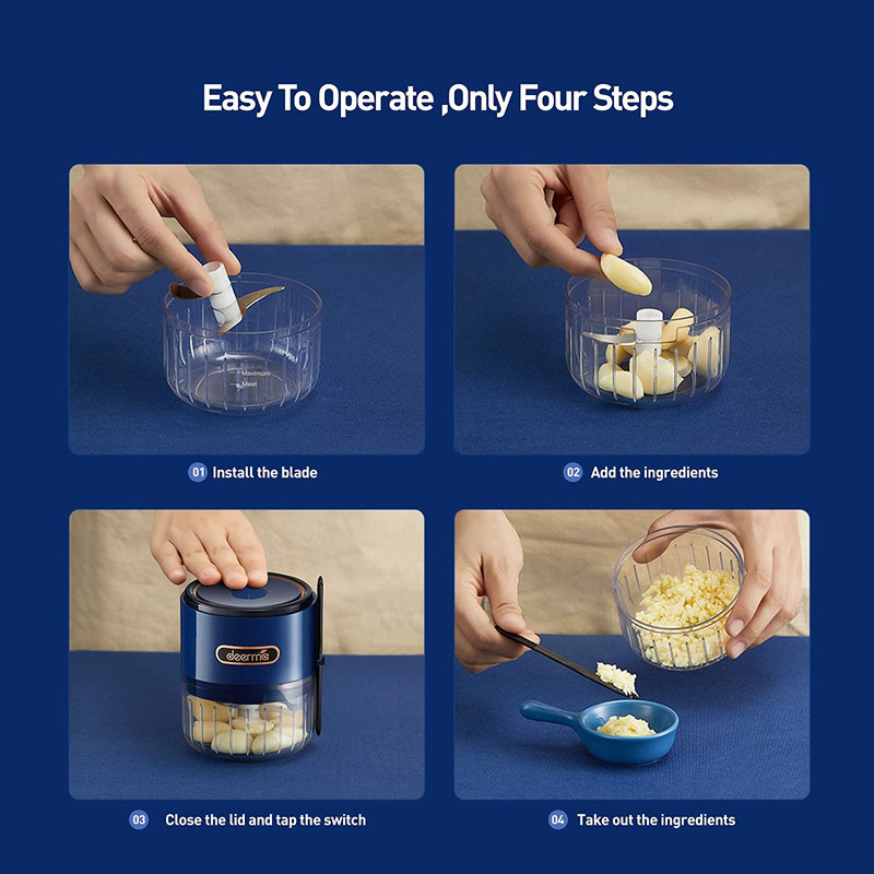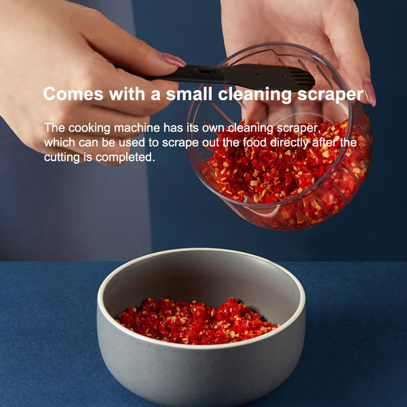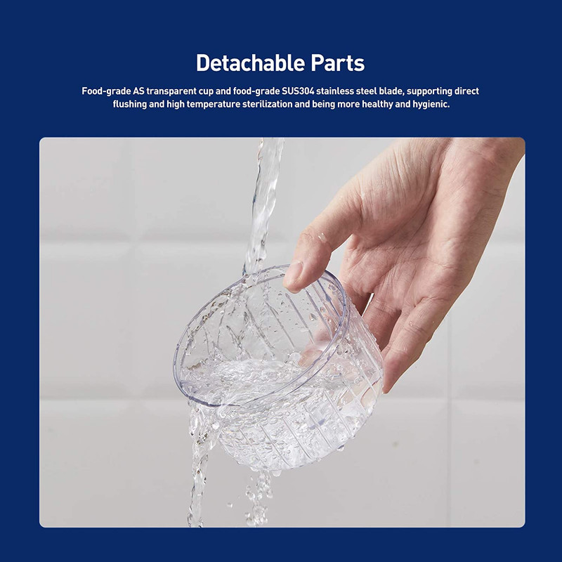 این مخزن میتواند برای خرد کردن موادی همچون سیر، پیاز، سیب زمینی، تهیه غذای کودک، درست کردن طعم دهنده ها برای غذای اصلی و بسیاری از موارد دیگر مورد استفاده قرار گیرد. مخزن آن به رنگ شفاف و از پلاستیک ABS تهیه شده که شستشوی آن را بسیار سهولت بخشیده است. همچنین یک قاشق در کنار دستگاه تعبیه شده که خود یک نکته مثبت به حساب میآید.