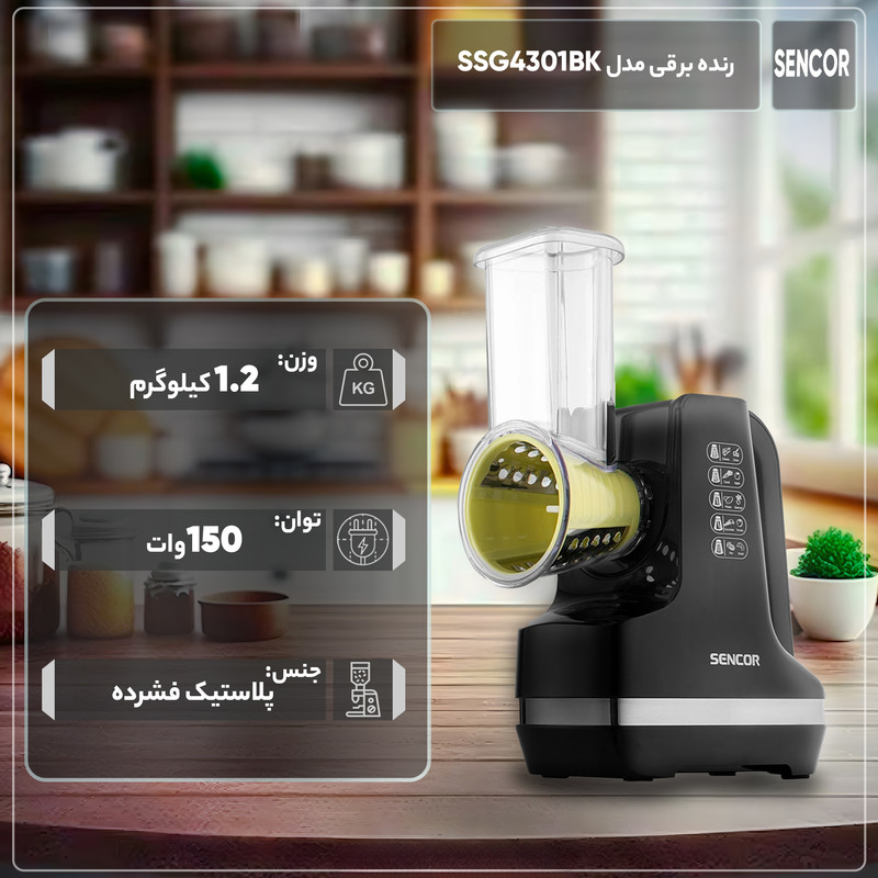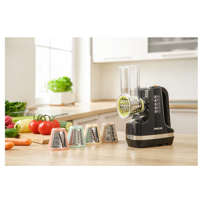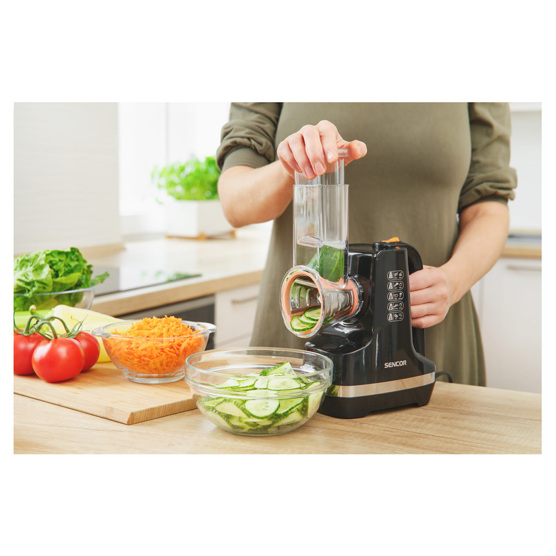 مناسب برای انواع میوه ها و سبزیجات دارای پنج رنده قابل تعویض طراحی ارگونومیک لوله تغذیه با قطر 56 میلیمتر پد ضد لغزش 150 وات با قابلیت برگه برگه کردن ، خلال کردن و خرد کردن انواع برش های تزییناتی حداکثر صدای تولیدی 85 دسی بل طول سیم برق 1.2 متر طراحی زیبا مزایای اصلی خلال و رنده مخصوص میوه و سبزیجات می توان برش، برش و رنده کرد تجهیزات جانبی لوازم جانبی ارائه شده: 5 پیوست قابل تعویض برای نتایج عالی: برش برای برش های نازک رنده برای برش های موج دار رنده درشت رنده ریز رنده بسیار ریز طراحی ارگونومیک مدرن با صرفه جویی در فضا، لوله تغذیه با عرض 56 میلی متر، رنده کردن و برش دادن مواد را بدون نیاز به برش قبلی امکان پذیر می کند .