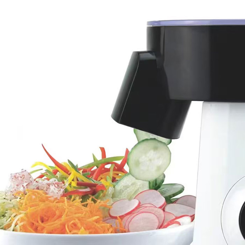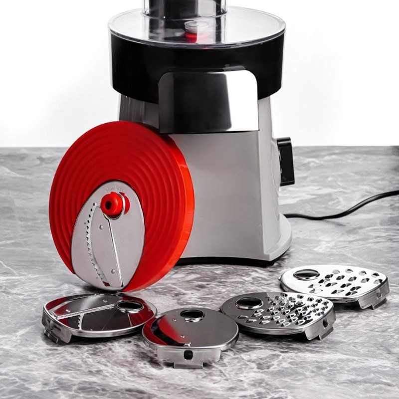 بدنه از پلاستیک باکیفیت ساخته شده و در کنار وزن ۵ کیلوگرمی، پایداری خوبی هنگام کار فراهم میکند. این وزن باعث میشود دستگاه در زمان استفاده لرزش نداشته باشد و کنترل آن راحتتر انجام شود. طراحی جمعوجور و کاربردی، امکان قرارگیری آسان روی سطح کابینت را فراهم کرده و پایههای ضدلغزش نیز از جابهجایی ناخواسته جلوگیری میکنند. اقلام همراه شامل رنده ریز، رنده درشت و رنده خلالکن است که تنوع بالایی در آمادهسازی مواد غذایی ایجاد میکند.