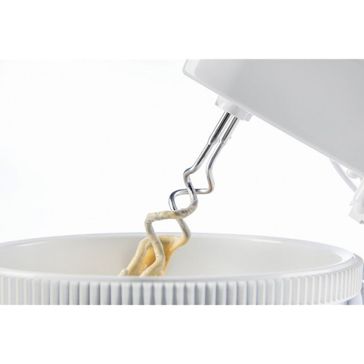 بدنه از جنس ABS سفید / دارای دکمه Turbo برای افزایش لحظهای سرعت / قابلیت تغییر وضعیت بازو / دارای ضربه گیر روی پایه محل استقرار / دو عدد چنگک خمیرزن