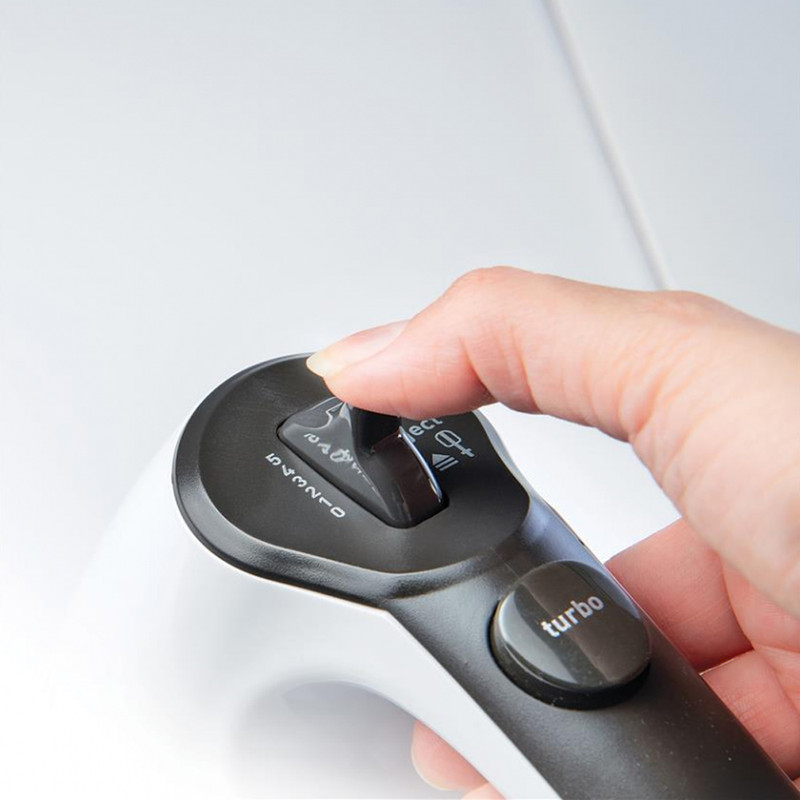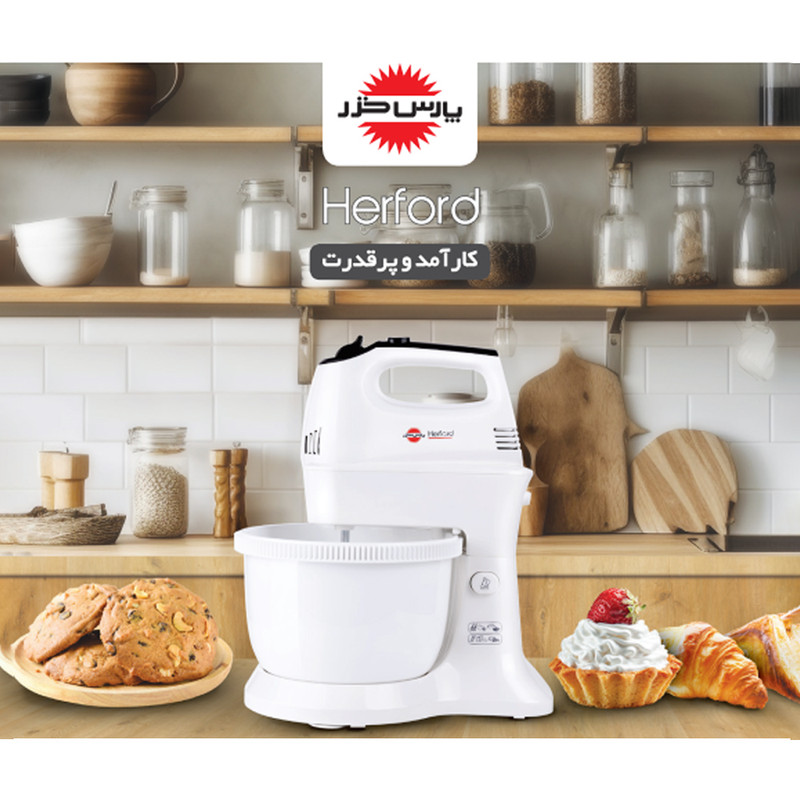 بدنه از جنس ABS سفید / دارای دکمه Turbo برای افزایش لحظهای سرعت / قابلیت تغییر وضعیت بازو / دارای ضربه گیر روی پایه محل استقرار / دو عدد چنگک خمیرزن