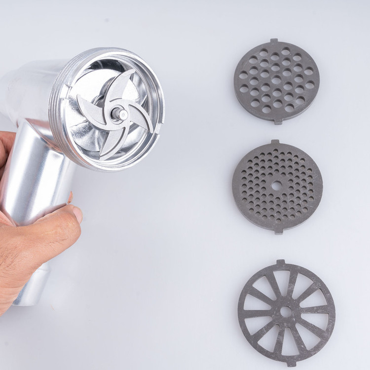 سایر توضیحات: توان موتور: 3600 وات ظرفیت خروجی: 2.5 کیلوگرم گوشت در دقیقه جنس بدنه: ترکیب پلاستیک فشرده و فلز جنس تیغه و شبکهها: استیل ضد زنگ سیستم چرخش معکوس: دارد محافظت از موتور: دارد اتصالات داخلی: فلزی