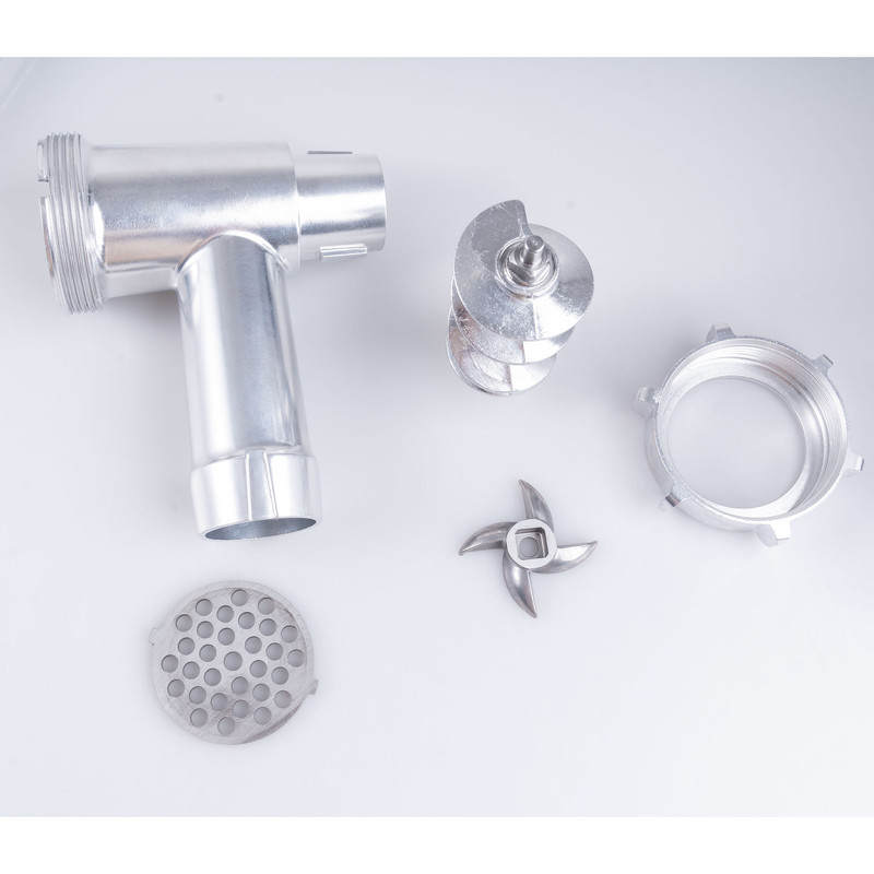 سایر توضیحات: توان موتور: 3600 وات ظرفیت خروجی: 2.5 کیلوگرم گوشت در دقیقه جنس بدنه: ترکیب پلاستیک فشرده و فلز جنس تیغه و شبکهها: استیل ضد زنگ سیستم چرخش معکوس: دارد محافظت از موتور: دارد اتصالات داخلی: فلزی