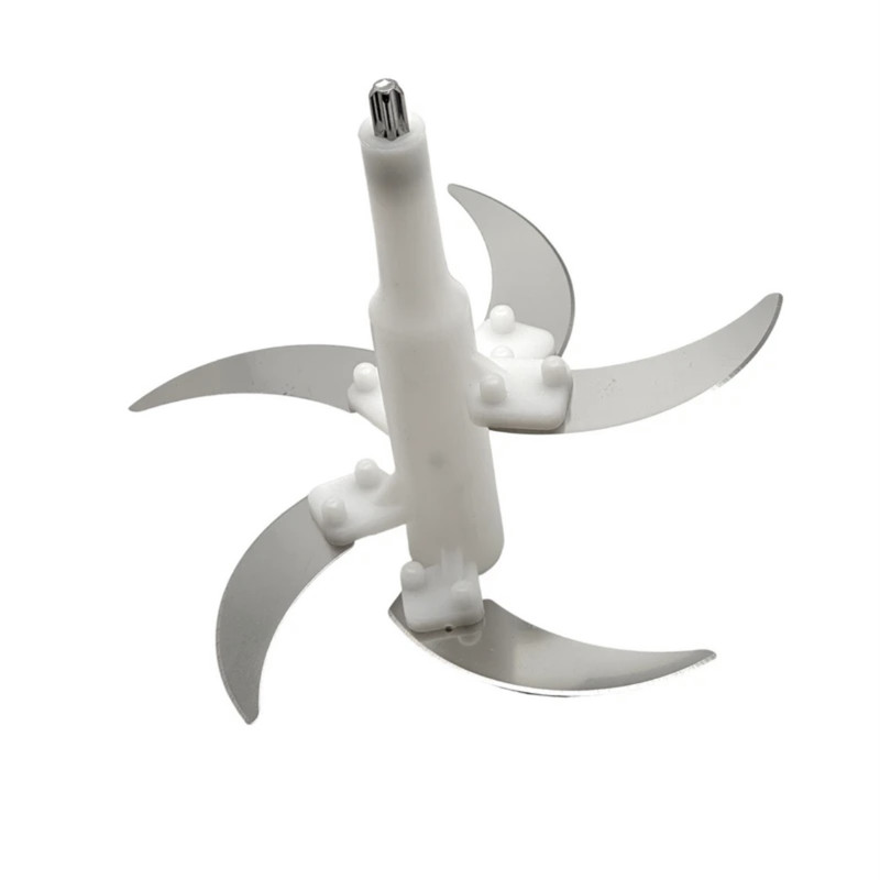 ظرفیت ۵۵۰۰ میلیلیتری محفظه خردکن، امکان خرد کردن حجم مناسبی از مواد غذایی را در یک مرحله فراهم میکند و نیاز به استفاده مکرر را کاهش میدهد. چهار تیغه استیل ضدزنگ با طراحی دقیق، عملکردی یکنواخت و سریع را در خرد کردن انواع مواد غذایی ارائه میدهند. این تیغهها بهراحتی از دستگاه جدا میشوند که علاوه بر افزایش ایمنی، شستوشو و نگهداری را سادهتر میسازد.