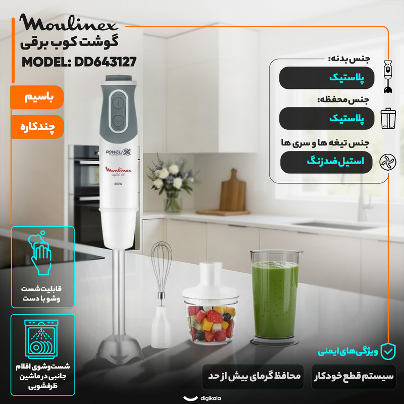 کاربری پیشنهادی: درست کردن اسموتی و نوشیدنی , خرد کردن گوشت نرم , خرد کردن سبزی , هم زدن مایع کیک , له کردن سیبزمینی , خرد کردن یخ , پوره کردن غذای داغ