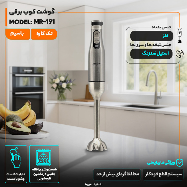 کاربری پیشنهادی: درست کردن اسموتی و نوشیدنی , خرد کردن گوشت نرم , خرد کردن یخ , پوره کردن غذای داغ