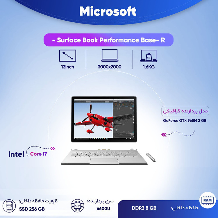 لپ تاپ 13 اینچی مایکروسافت مدل- Surface Book Performance Base- R