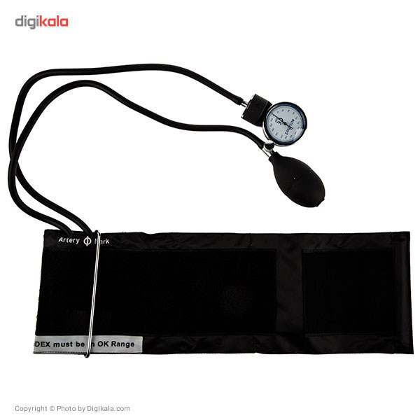 دارای مانومتر بزرگ و خوانا با رنگ صفحه مشکی و اعداد و عقربه سفید، مدرج تا دامنه 300 میلیمتر جیوه و بدون پین - دارای پیچ تخلیه هوای کاف از جنس برنج با روکش کروم - کاف بدون لاتکس و ضد حساسیت مناسب برای دور بازوی 24 تا 32 سانتیمتر - گوشی پزشکی تکبل
