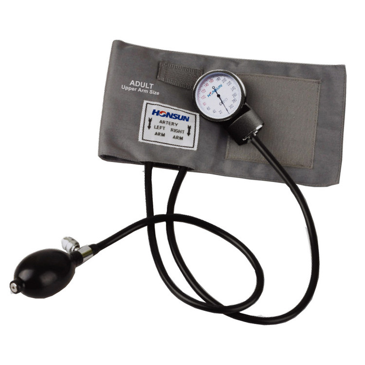 دارای گوشی دو پاویونه بدون نیاز به برق و باتری صفحه نمایش گرد ساعتی مانومتر با زمینه سفید و نوشته های مشکی و قرمز درشت