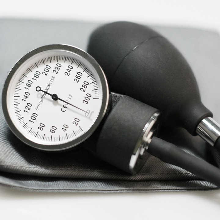 دارای گوشی دو پاویونه بدون نیاز به برق و باتری صفحه نمایش گرد ساعتی مانومتر با زمینه سفید و نوشته های مشکی و قرمز درشت
